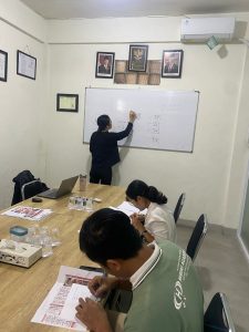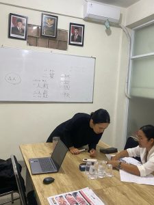また、入国前の練習はこの様に 日本についての最後の勉強を日本人スタッフから行います。 日本に行ってからも安心です!